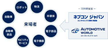 同時開催展のクルマ、エレクトロニクスの展示会からの来場者にもアプローチが可能!